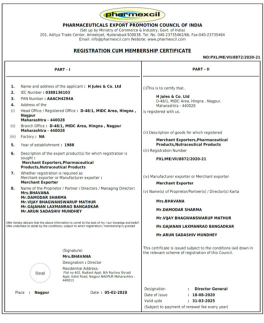 H Jules is a GMP and ISO-certified Indian pharmaceutical company headquartered in Central India. With over three decades of industry expertise, we have evolved from a trading company into a comprehensive supplier of pharmaceutical formulations, APIs, excipients, and manufacturing equipment.